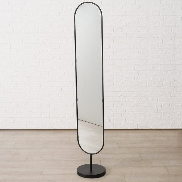 Mirror Orion, Standing mirror, H 172 cm, W 30 cm, Iron, Mirror glass, Sand, Plastic mixed materials black