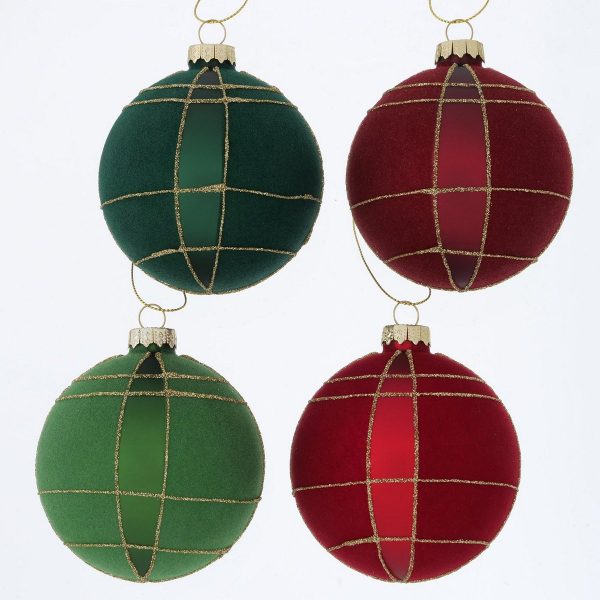 Christmas ball Quentin, 4 ass., Counter display, D 8,00 cm, Glass laquered, Green, Red glass laquered colour-mix