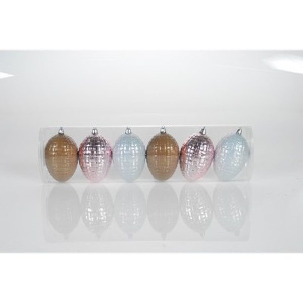 SET/6 SHATT.EGGS ORNAM. W/KNIT PATTERN IN PET TUBE