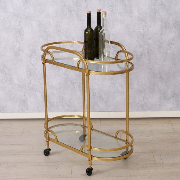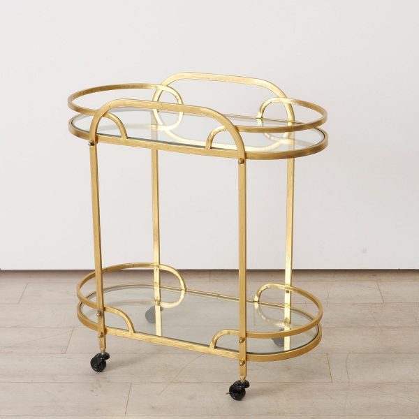 Table Giovanni, Serving trolley, H 87 cm, W 79,5 cm, Iron, Mirror glass mixed materials antique gold