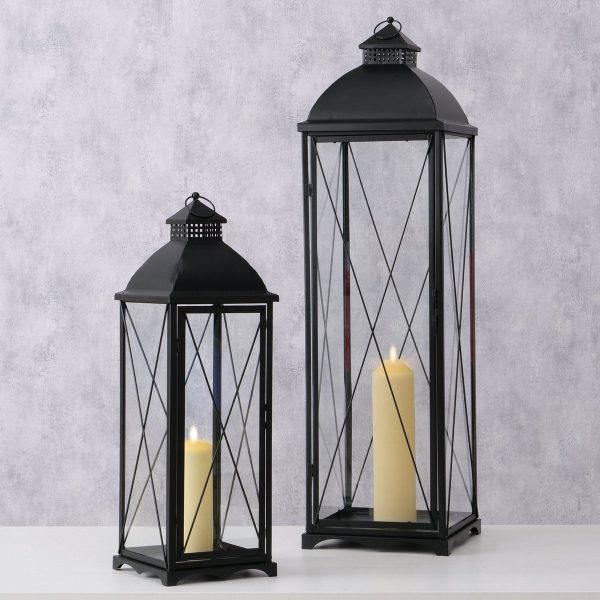 Lantern Sumatra, 2 p., Set 2, Square, Indoor, H 56-76 cm, W 27-35 cm china fir black