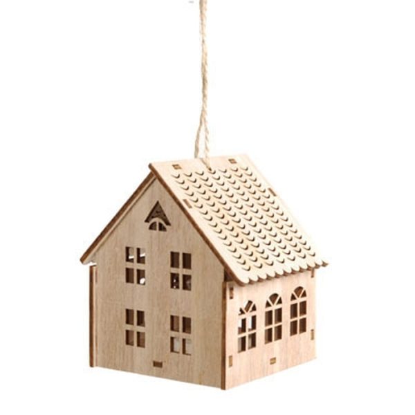 WOODEN HOUSE HANGING 8X6X12.5 CM NATURE CM NATURE WITH LED LIGHT INSIDE