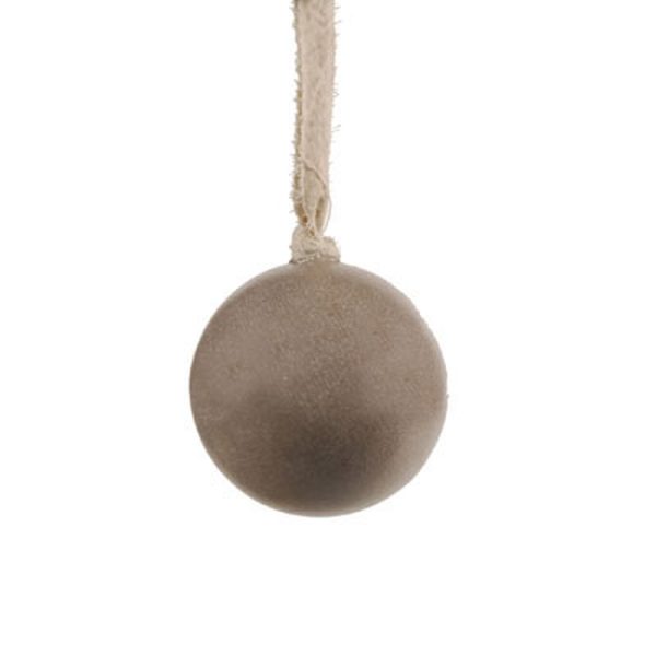 BALL WOODEN BEIGE MAT 8 CM WITH FABRIC RIBBON