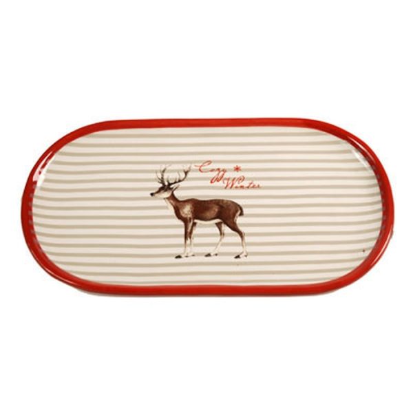 DOLOMITE OVAL PLATE WITH DEER DECAL RED 27.3X14.8X2 CM