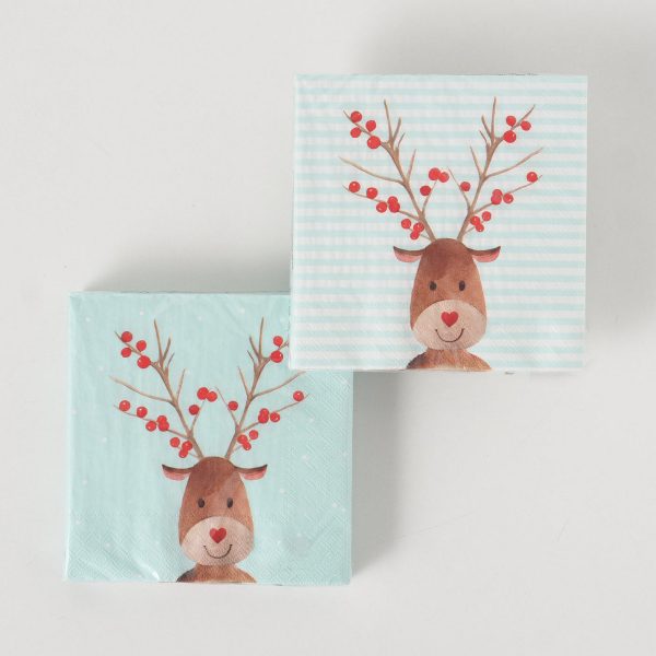 Napkins Fynn, 20 p., 2 ass., Paper, Multi-coloured, Motif, Square, Deer, Geometrical paper colour-mix