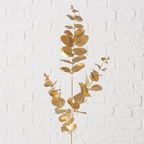 Decorative branch , Eucalyptus, Indoor, H 80 cm, Iron, Plastic, Polyester mixed materials gold