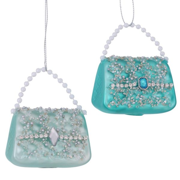 Christmas pendant Baggy, 2 ass., Special shape, L 6 cm, H 4,5 cm, Glitter, Shiny mixed materials turquoise