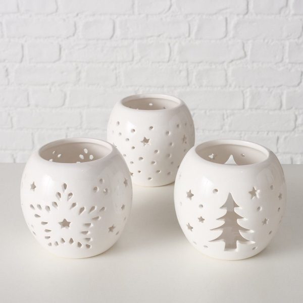 Windlight Lyma, 3 ass., Counter display, Round, H 8 cm, Earthenware Earthenware white