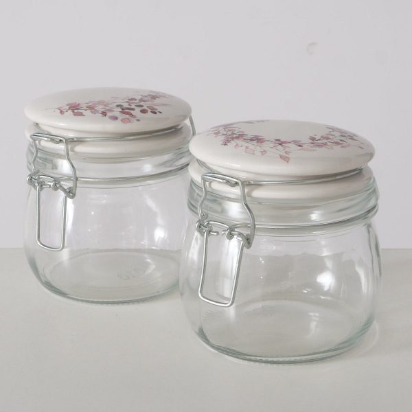 Storage jar Bernada, 2 ass., 450 ml, H 11 cm, Iron, Clear glass, Porcelain, Silicone, Multi-coloured, Floral mixed mater