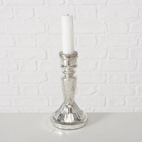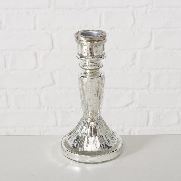 Candle holder Chrystal, Round, H 16 cm, Glass lacquered, Silver glass laquered silver