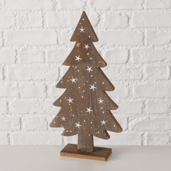 Decorative object Castano, Christmas tree, with stand, H 31 cm, Pine (Pinus spp.), MDF mixed materials brown