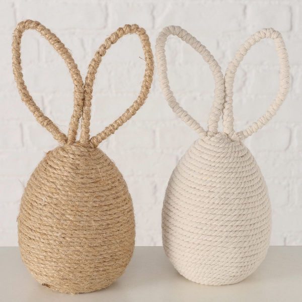 Decorative object Elina, 2 ass., Rabbit, Egg, H 27,00 cm, Iron, Polystyrene foam, Jute, Cotton, Polyester, Single-colour