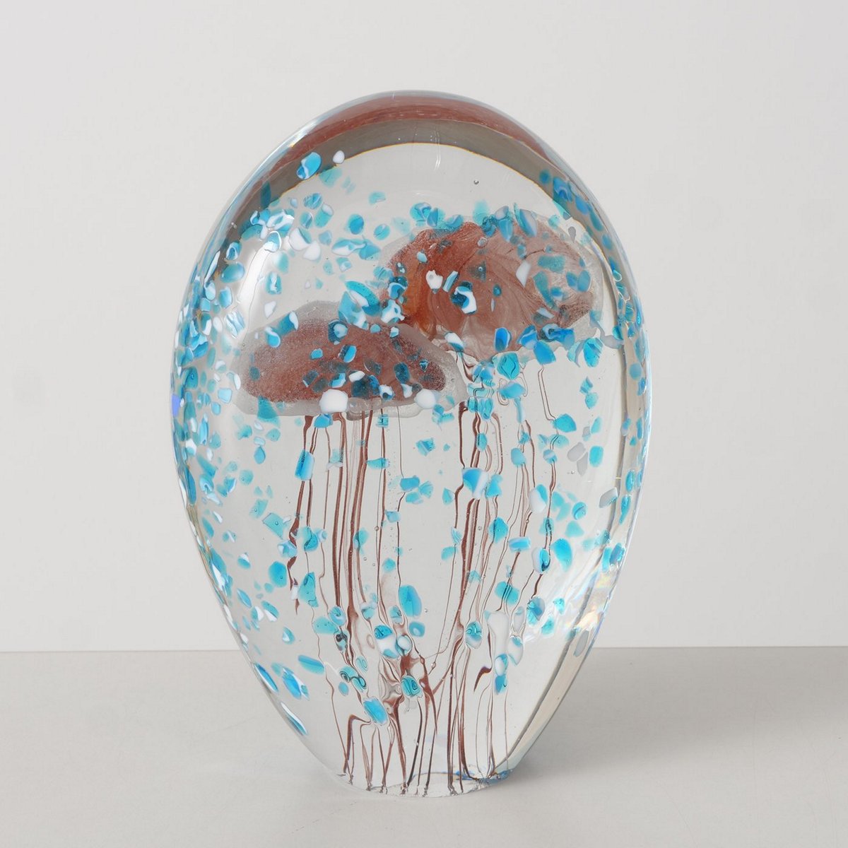 Paperweight Jelly, Jellyfish, H 14 cm, Glass solid colored, Shiny glass solid colored blue