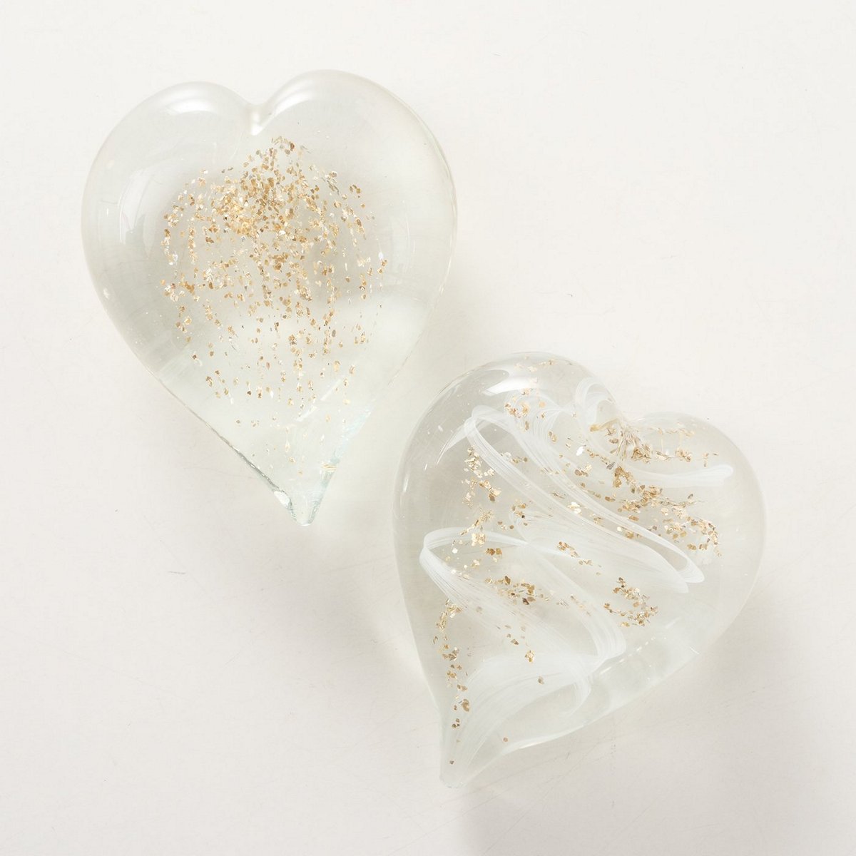 Paperweight Marmo, 2 ass., Heart, H 3 cm, Glass solid colored, Shiny glass solid colored colour-mix