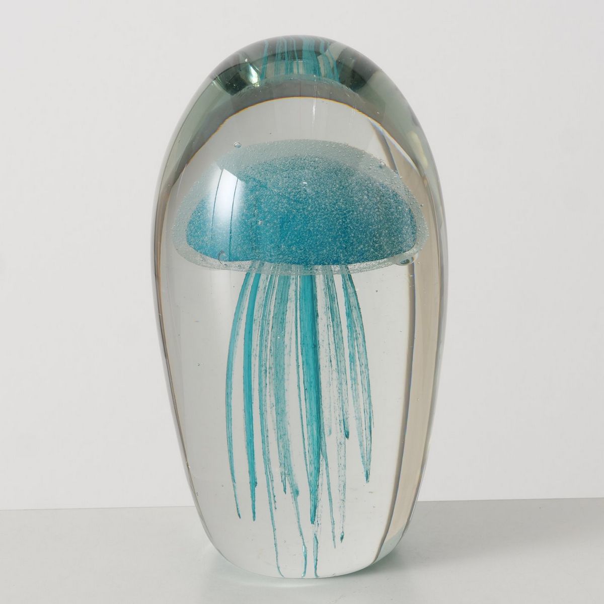 Paperweight Medusa, Jellyfish, Oval, H 16,50 cm, D 9,00 cm, Glass solid colored