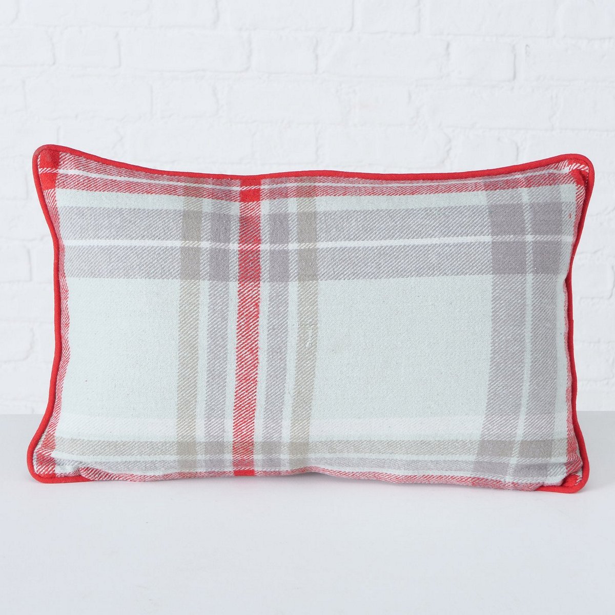 Pillow Karolina, 2 ass., Textile, Cotton / 100%, Checkered, Beige, Grey, Red, L 50 cm mixed materials colour-mix
