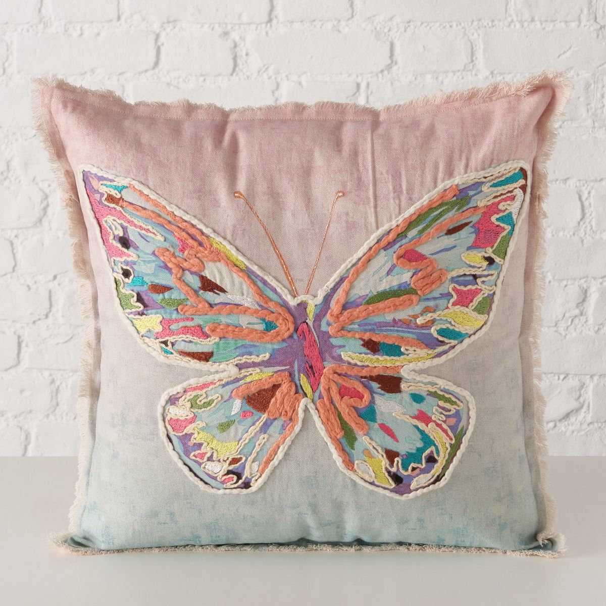 Pillow Mirabel, Cotton, Square, Multi-coloured, Light blue, Light rose