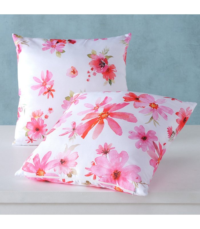 Pillow Rosella, 2 ass., Polyester satin / 100%, Floral, Flower, Floral, 45χ45χ15 cmMulti-coloured, Light rose, Pink, Red, White pol