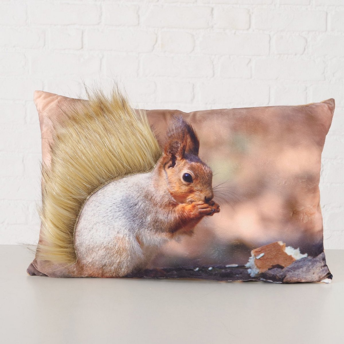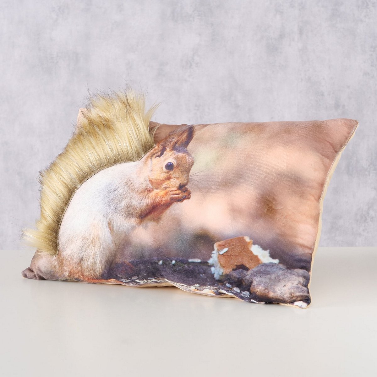 Pillow Tammo, Polyester / 100%, Squirrels, Brown, White, L 45,00 cm polyester colour-mix