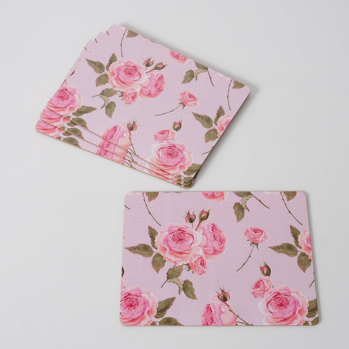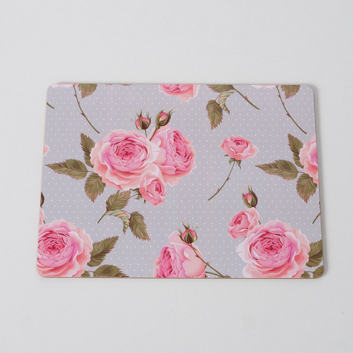 Placemat Roselia, 2 ass., MDF, Multi-coloured, Floral, Mat, Grey, Light rose MDF colour-mix