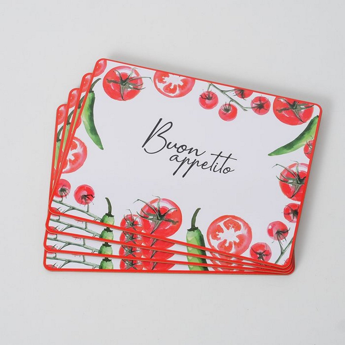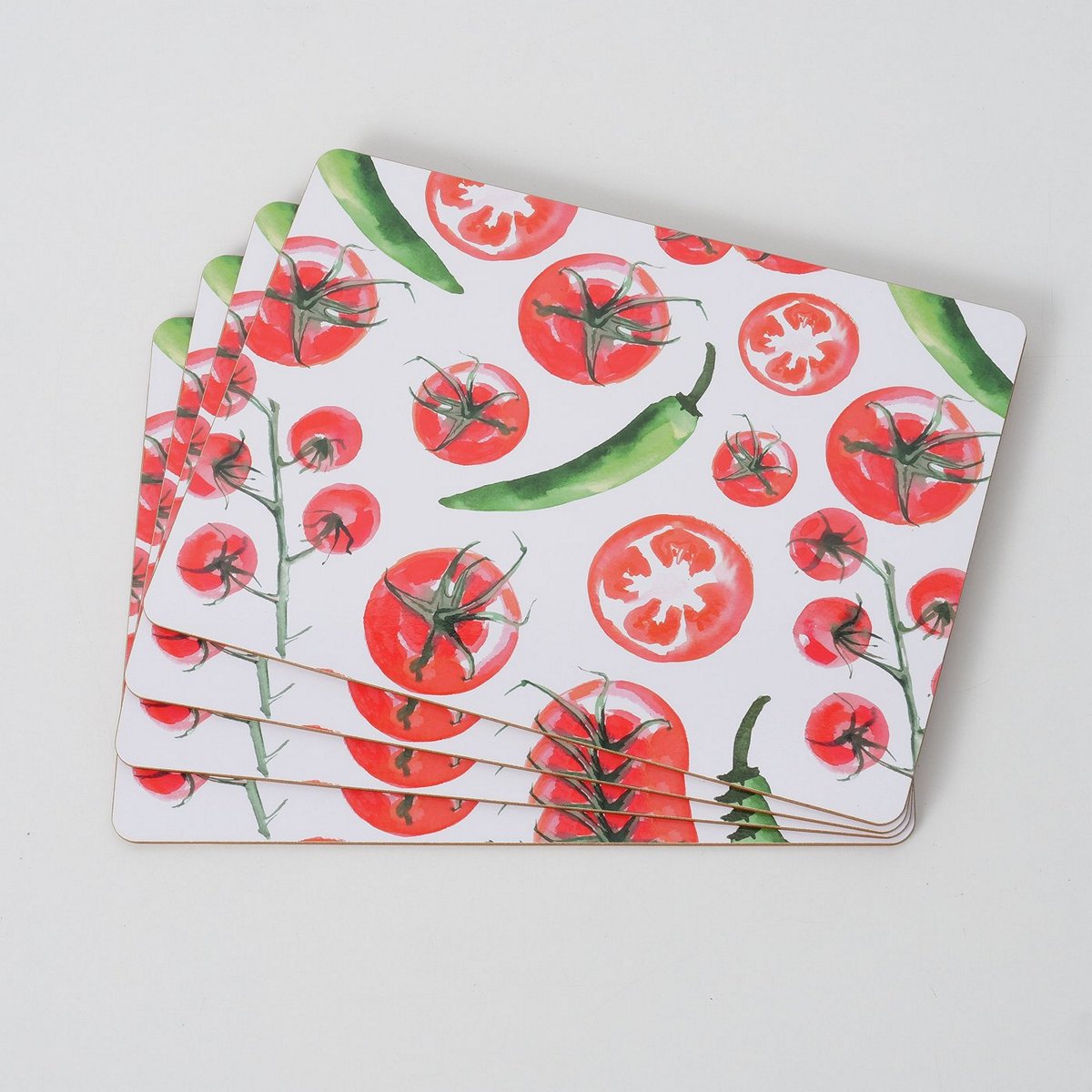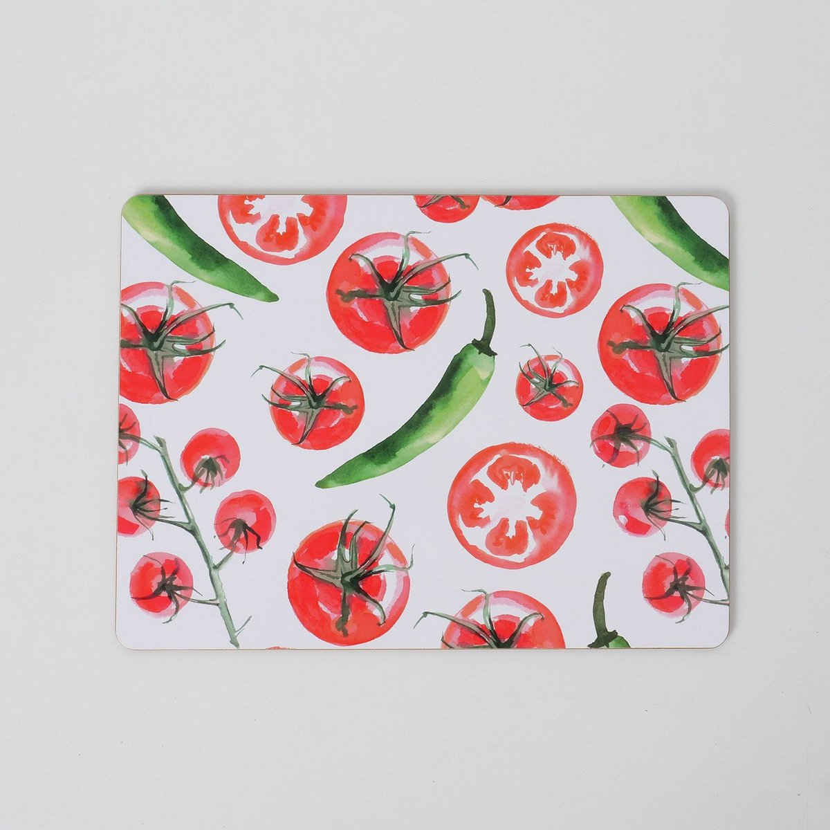 Placemat Tomato, 2 ass., MDF, Multi-coloured, Motif, Mat, Red, White MDF colour-mix