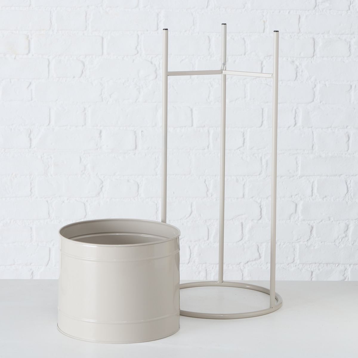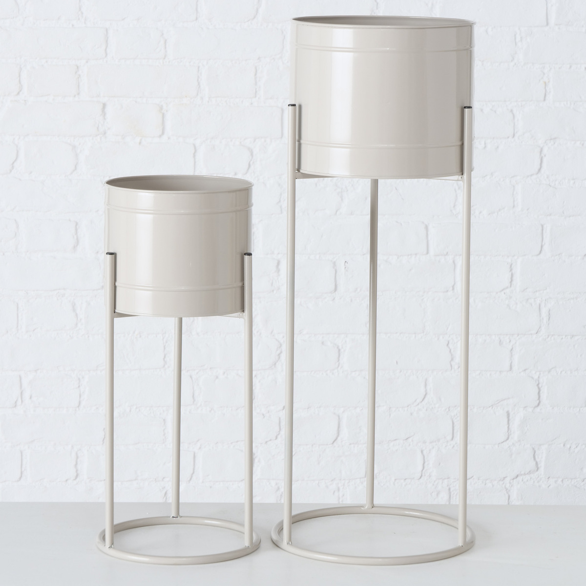 Plant pot holder Derby, 2 p., Set 2, H 45,00-66,00 cm, Zinc, No, Single-colour zinc beige