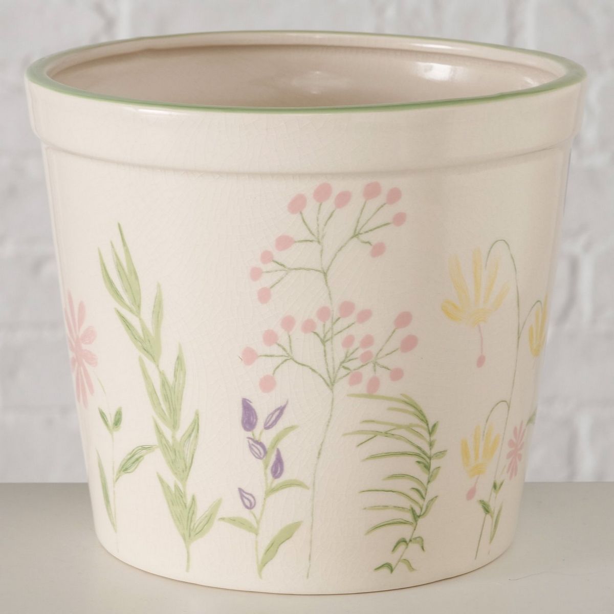 Planter Blossom, 2 p., Set 2, H 11,00-14,00 cm, Earthenware, All-round printing, Floral, Multi-coloured, Green