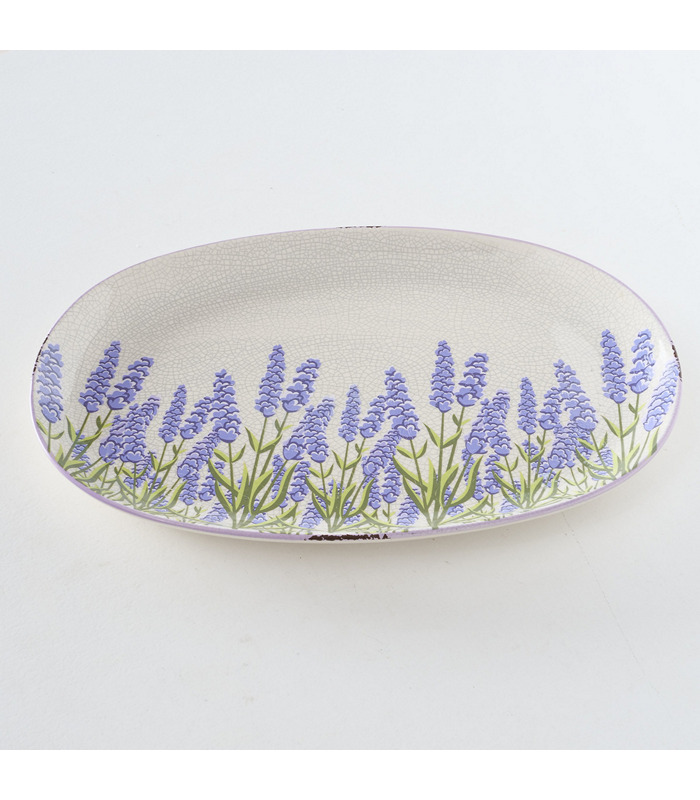 Plate Lavanda, Stoneware, Multi-coloured, Floral, Coloured edge, Green, Purple, White, Oval stoneware colour-mix