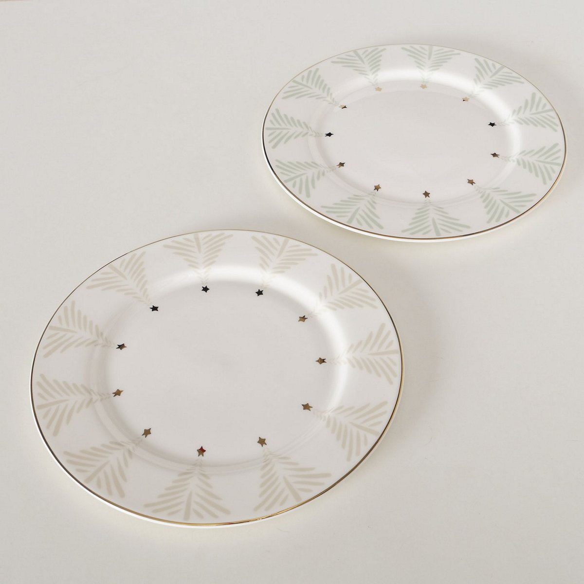 Plate Scarlett, 2 ass., New Bone, Multi-coloured, Motif, Coloured edge, Gold, Green, White, Round New Bone colour-mix