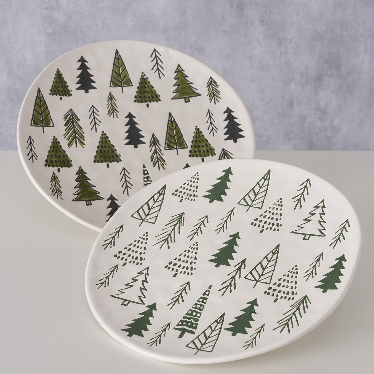 Plate Verde, 2 ass., D 22 cm, Dolomite, Multi-coloured, Motif, Green, White dolomite colour-mix