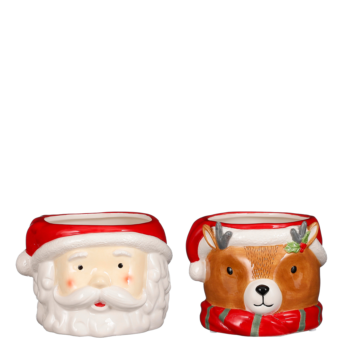 Pot santa deer brown cream 2 assorted – l16xw15,5xh12cm