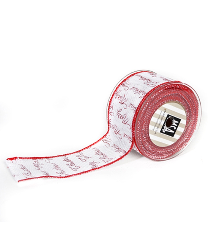 RIBBON 7CMX9,1M MERRY CHRISTMAS IN FLAX – RED/WHITE