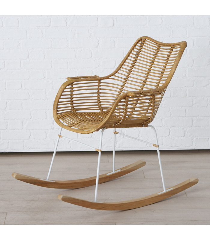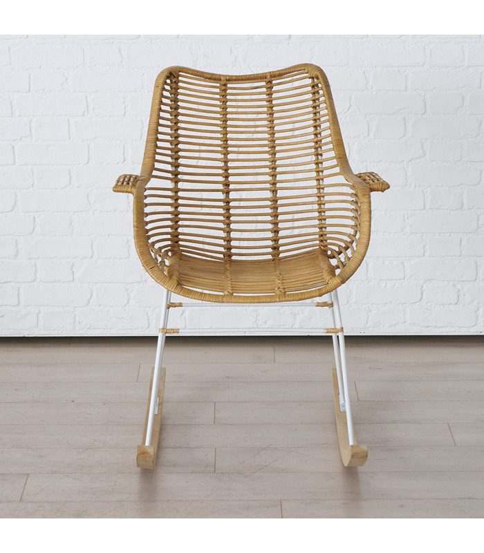 Rocking chair Lavjio, H 91,00 cm, Teak wood (Tectona grandis), Iron powder coated, Rattan, Single-colour, Light brown, W