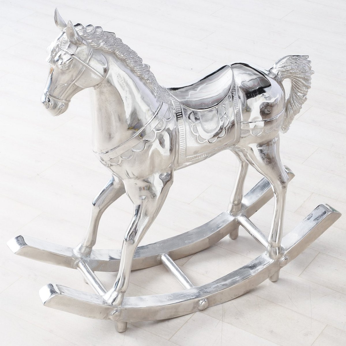 Rocking horse Ansija, H 115 cm, Alu nickle, Shiny, Single-colour alu nickle silver