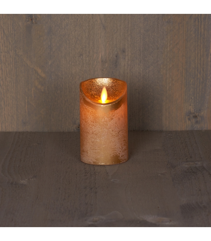 RUSTIC WAX CANDLE MOVING FLAME 7.5X12.5 CM GOLD W/TIMER 3XAA