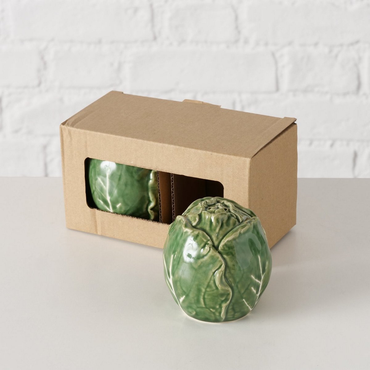 Salt and pepper shaker Cabbage, 2 p., H 7,5 cm, Earthenware, Silicone, Single-colour mixed materials green