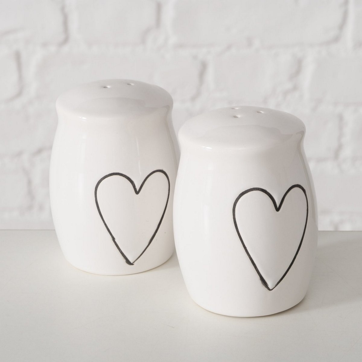 Salt and pepper shaker Core, 2 p., H 8 cm, Dolomite, Single-colour, Motif dolomite white