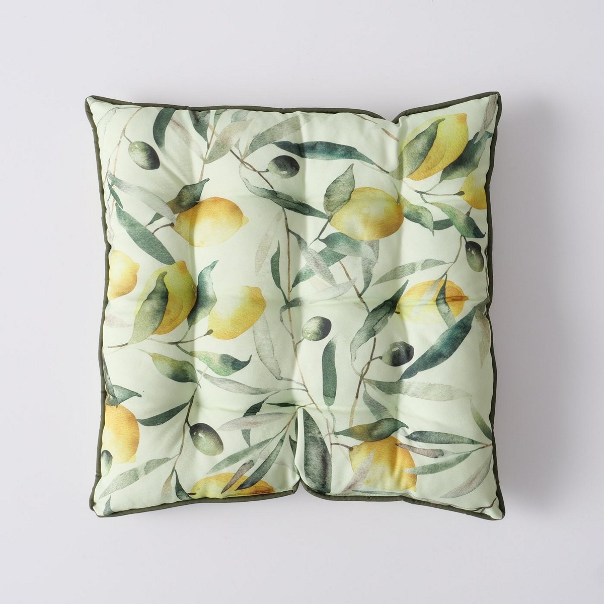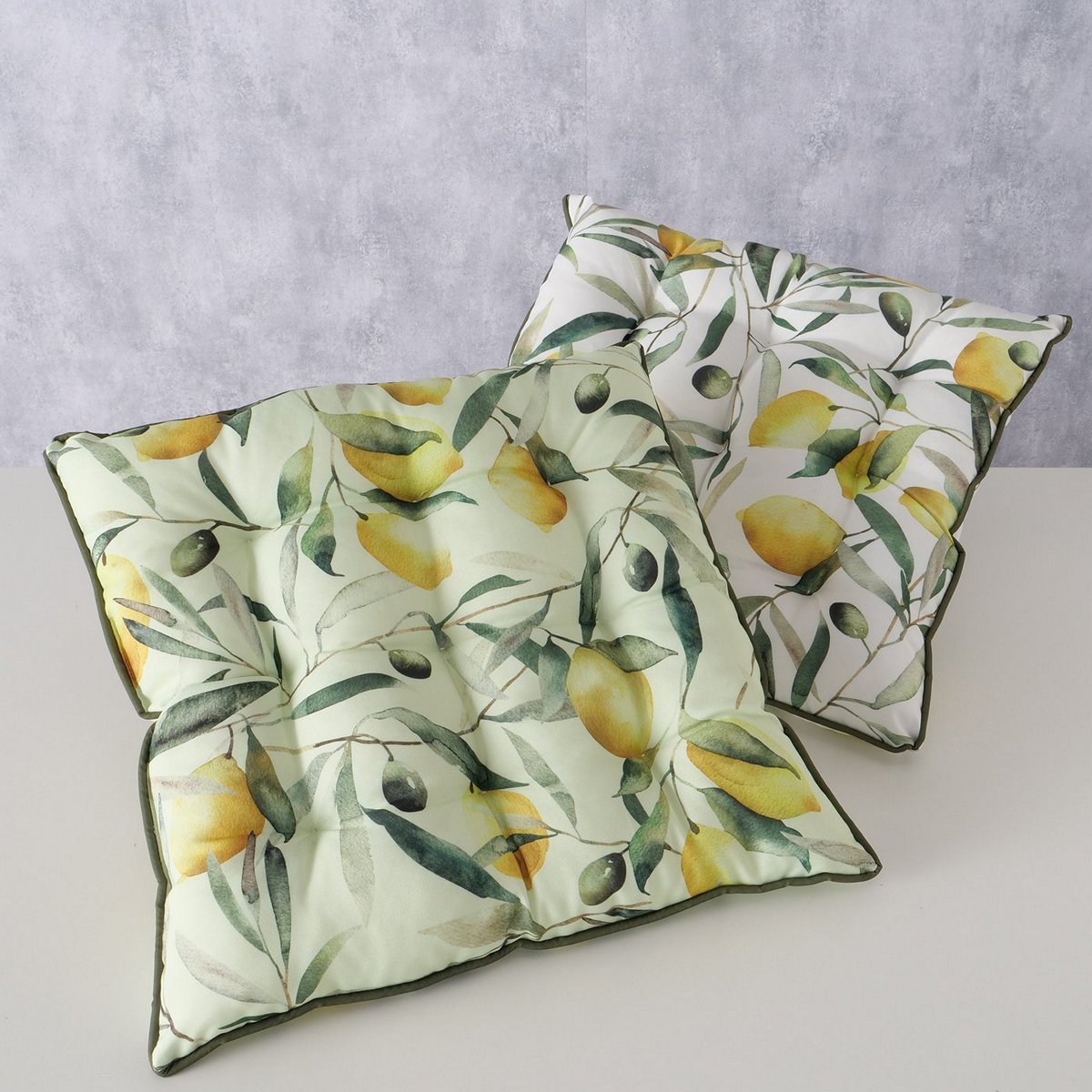 Seat cushion Zitronella, 2 ass., Polyester / 100%, Lemon, Floral, Multi-coloured, Motif, Green, White, Yellow polyester