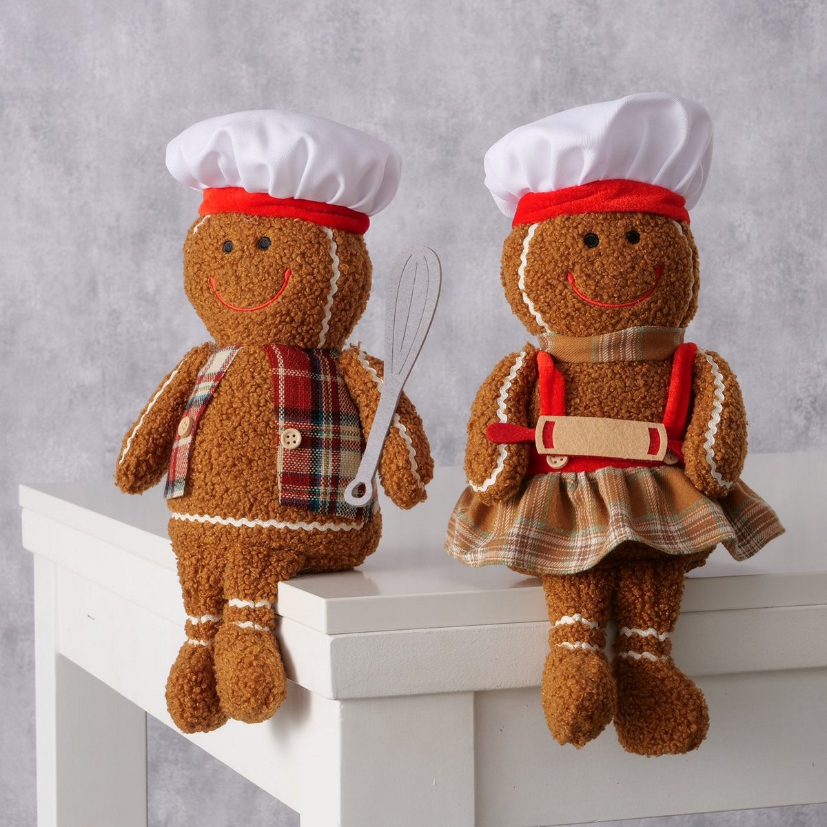 Shelf sitter Ginger, 2 ass., Gingerbread man, H 32 cm, Schima (Schima spp.), Iron powder coated, Polyester, Brown, Red m