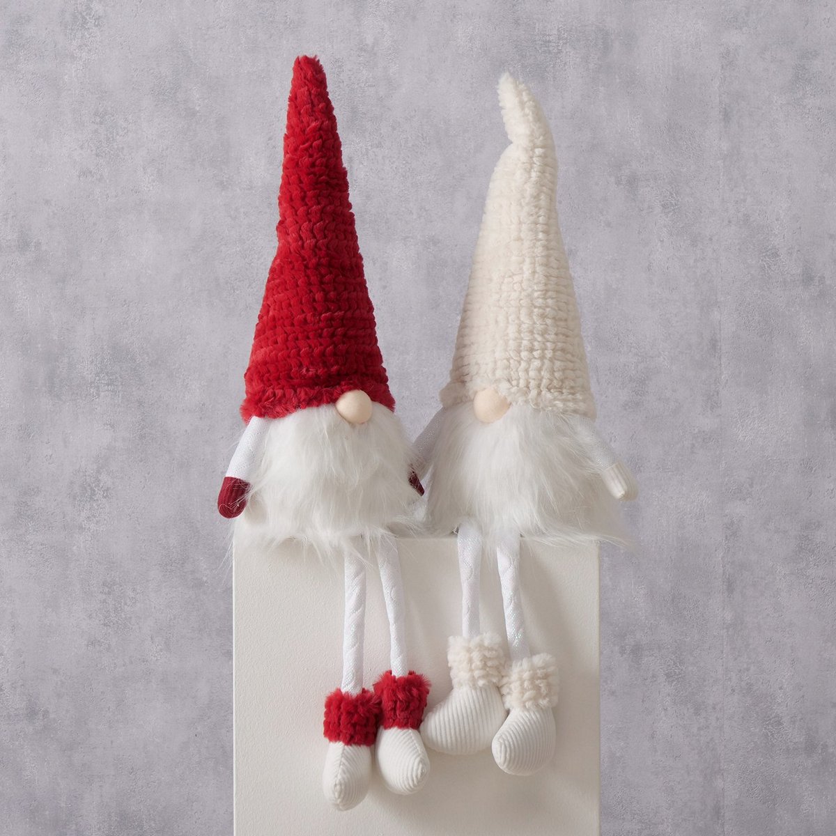 Shelf sitter Wolly, 2 ass., Gnome, H 73 cm, Sand, Acrylic woven, Cotton, Polyester, Red, White mixed materials colour-mi