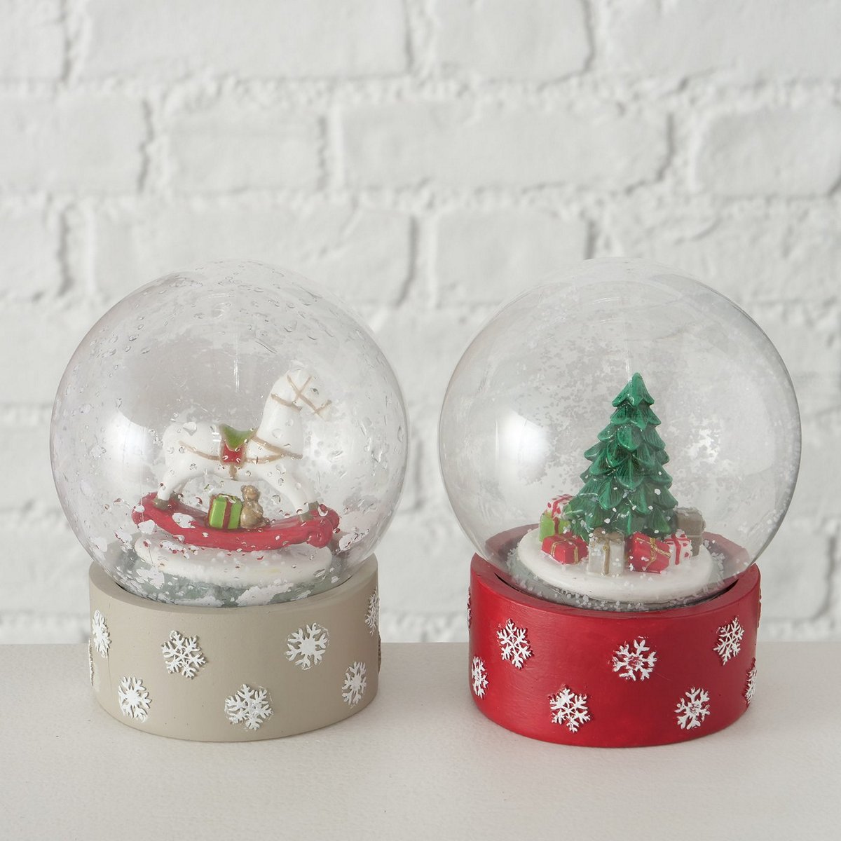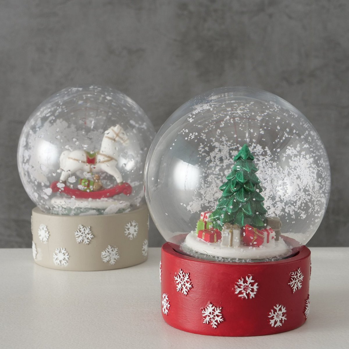 HomeSHOPCHRISTMAS COLLECTIONChristmas decoration Snow globe Delight, 2 p., 2 ass., D 10,00 cm, Polyresin, Multi-coloured, Mat, Snowy polyresin colour-mix