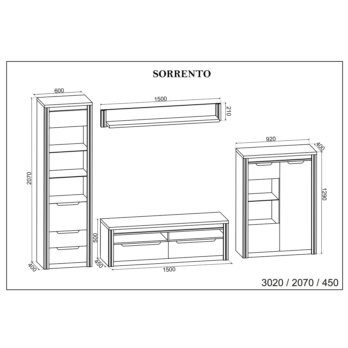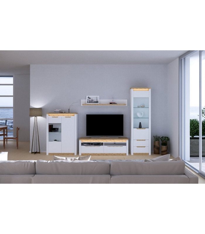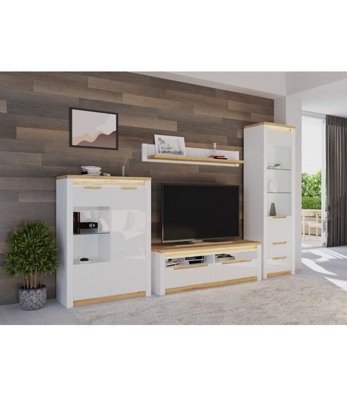 SORRENTO SET/4 oak tahoe/nymphaea alba/white gloss w/illumination (TV SHELF SHOWCASE CABINET) 302/207/45cm melamine (assembling instructions included)