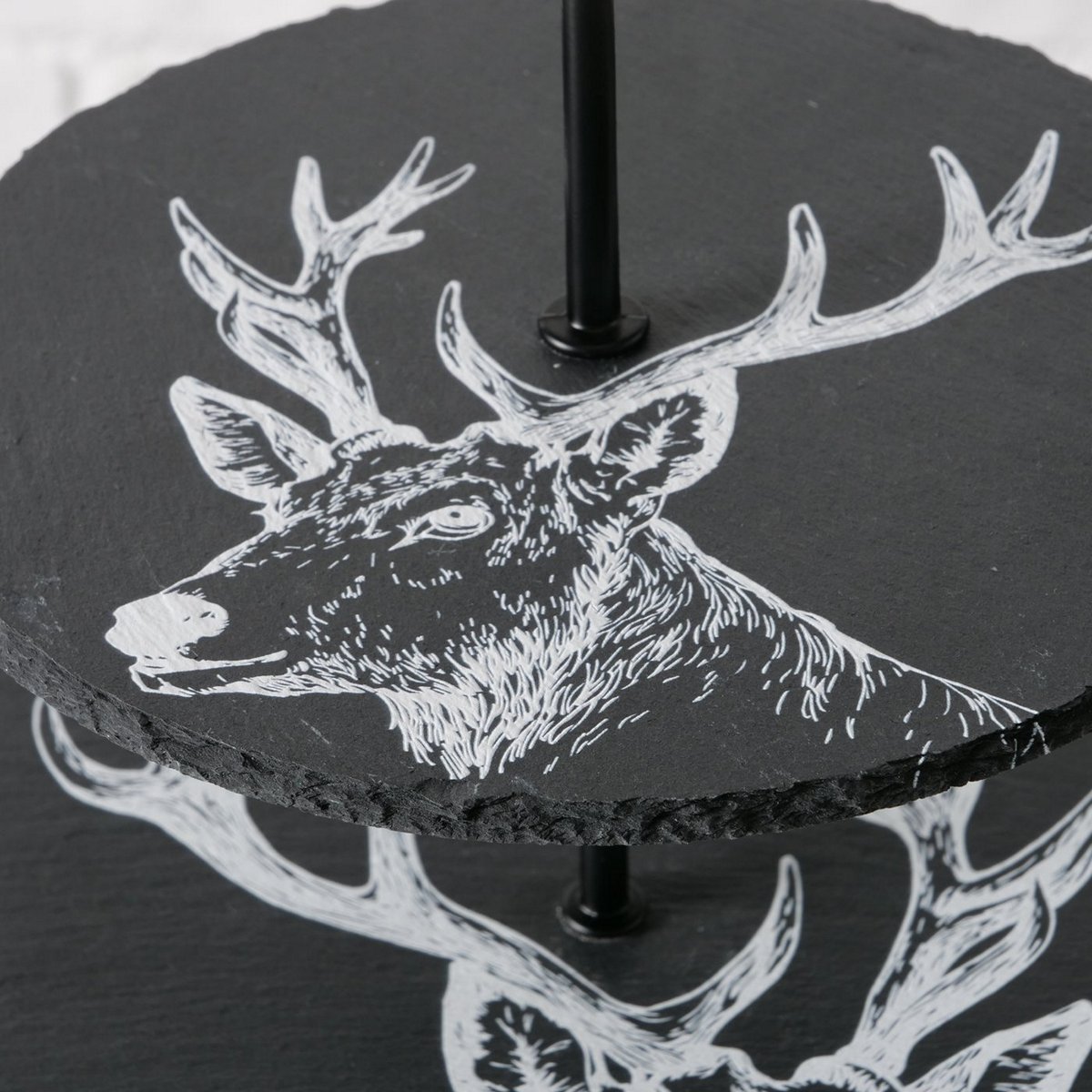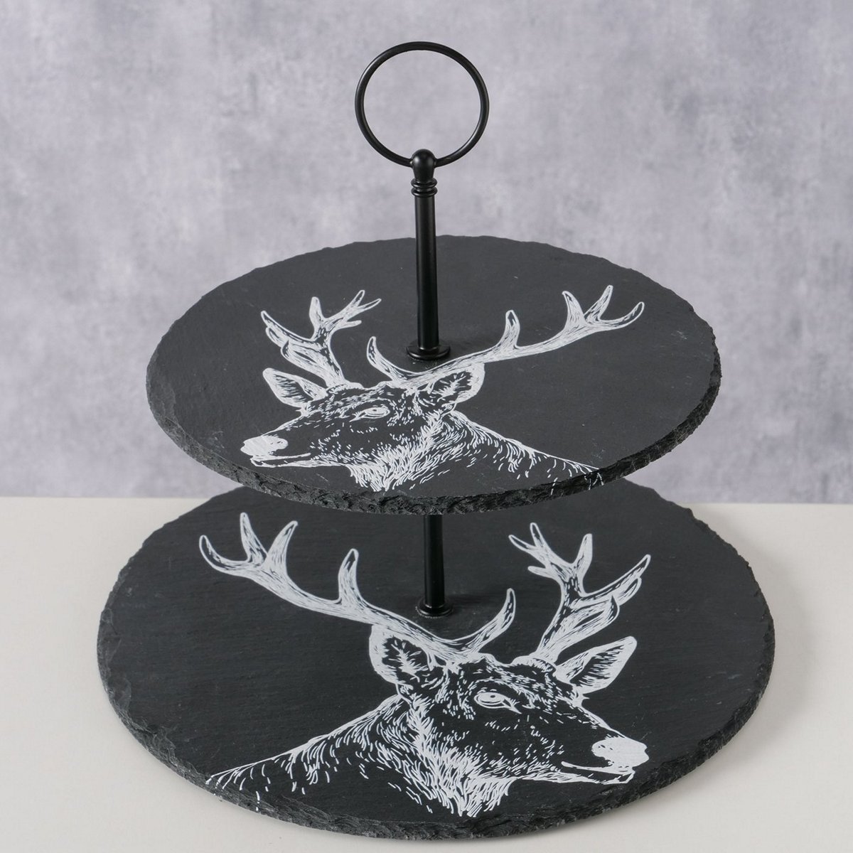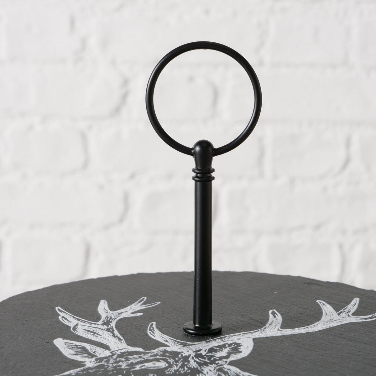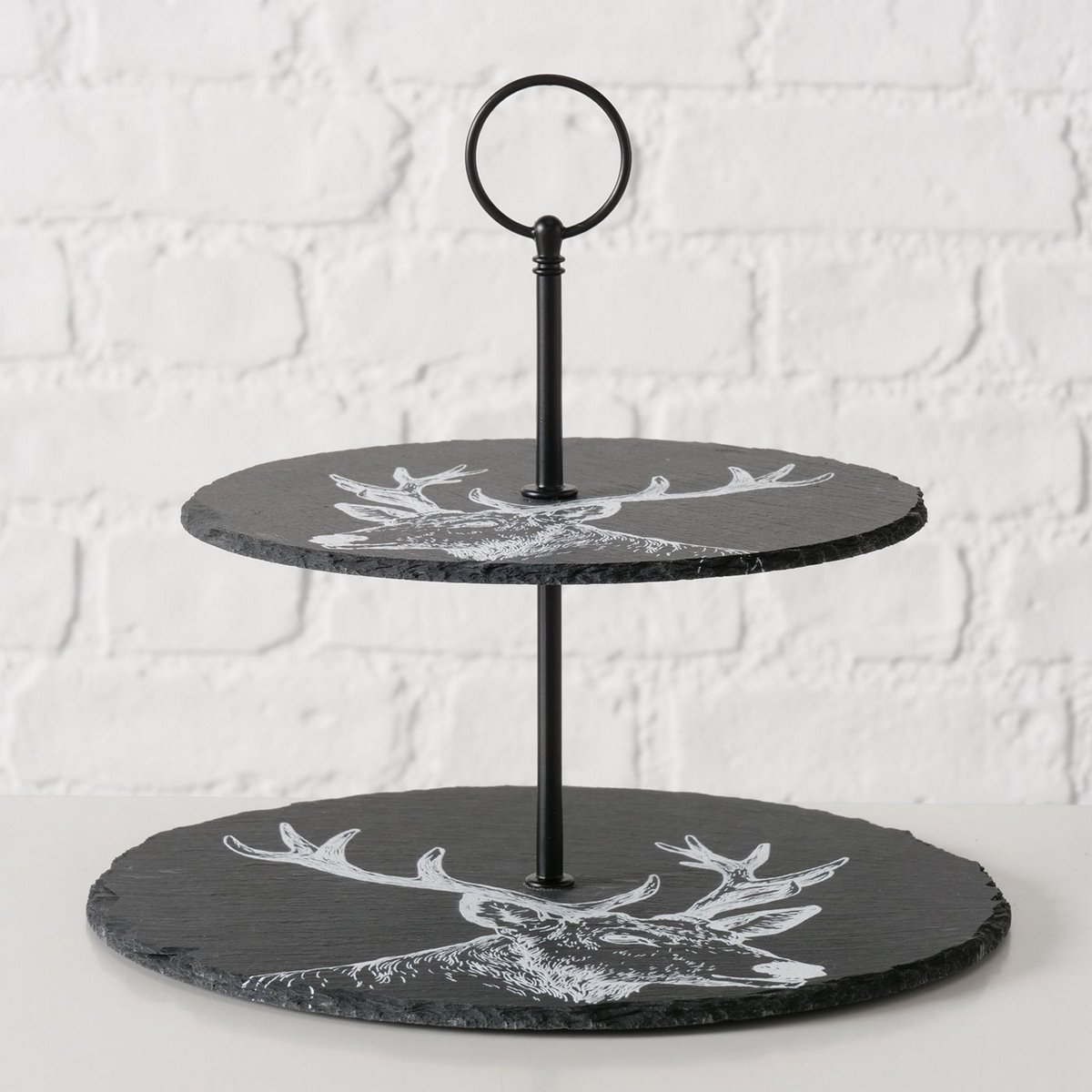 Stand with shelves Moritz, H 24 cm, Iron powder coated, Slate, Multi-coloured, Motif mixed materials black