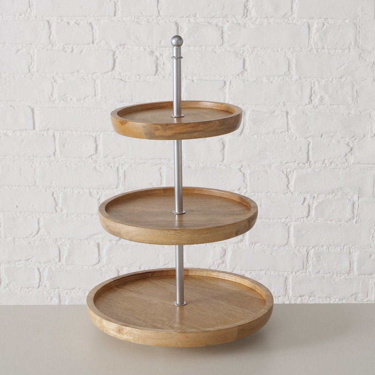 Stand with shelves Wenlis, D30 H45cm Mango (Mangifera indica), Iron, Single-colour mixed materials colour-mix