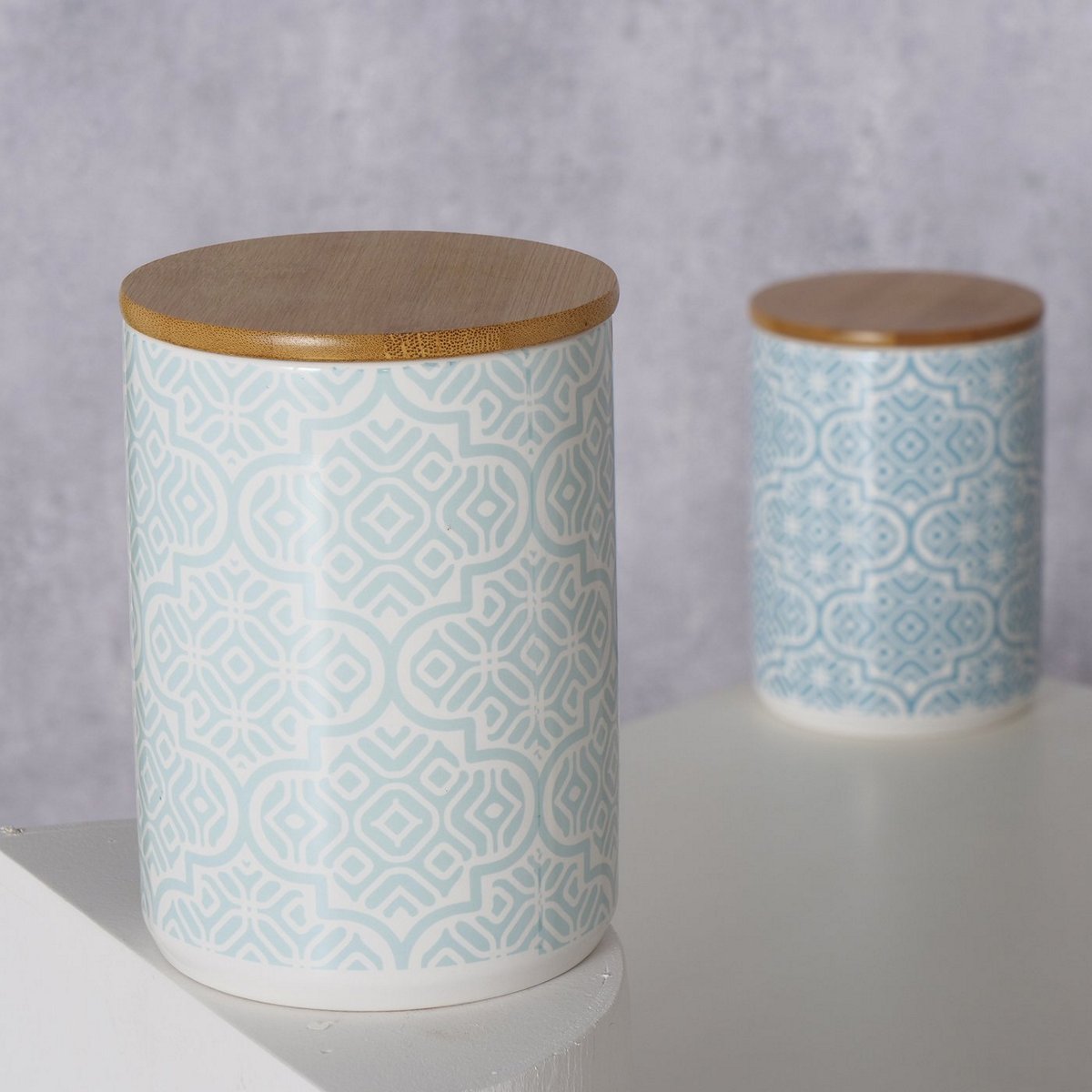 Storage canister Amaya, 2 ass., H 14 cm, D 14 cm, Earthenware, Multi-coloured, Ornament, All-round printing stoneware co