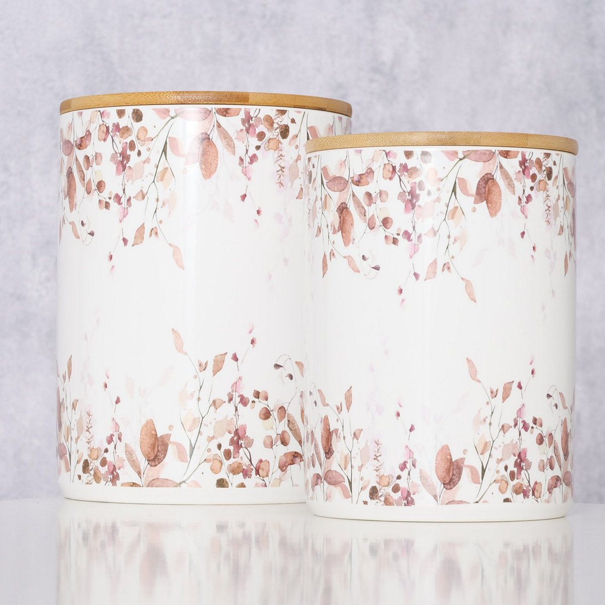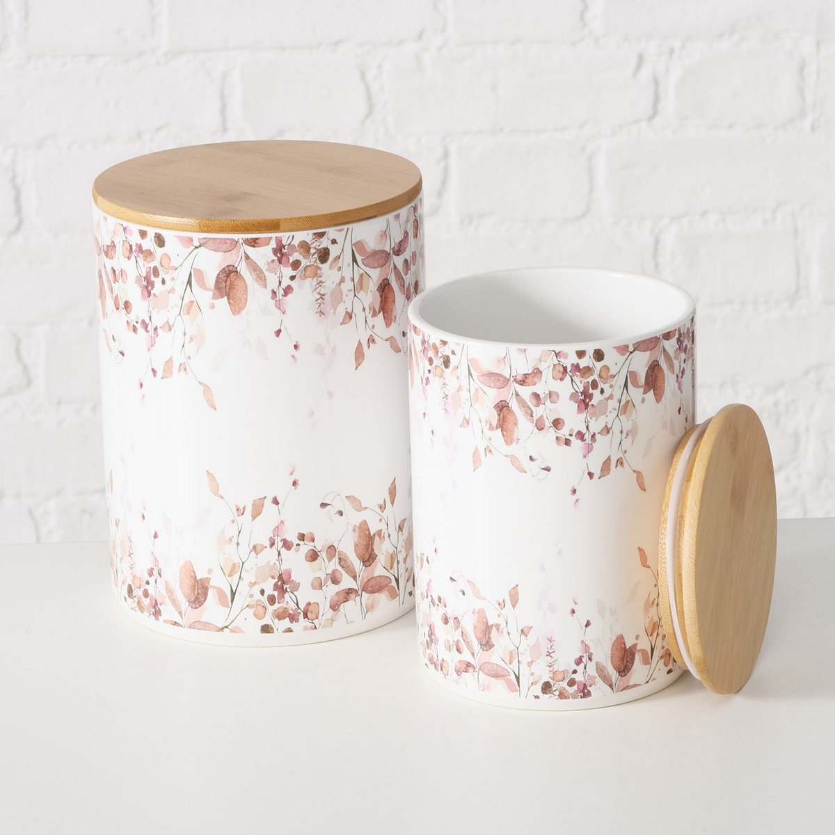 Storage canister Bernada, 2 p., Set 2, H 16-19 cm, D 12-14 cm, Bamboo (Phyllostachys edulis), Earthenware, Silicone, Mul