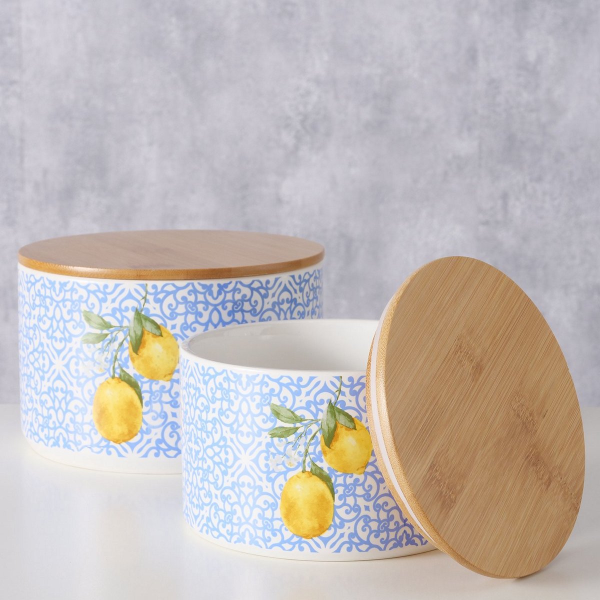 Storage canister Capri, 2 p., Set 2, H 9-10 cm, D 13-16 cm, Bamboo (Phyllostachys edulis), Earthenware, Silicone, Multi-