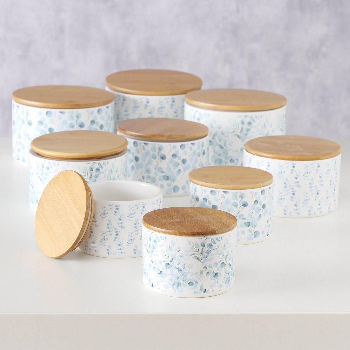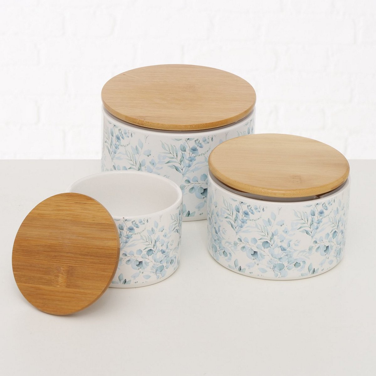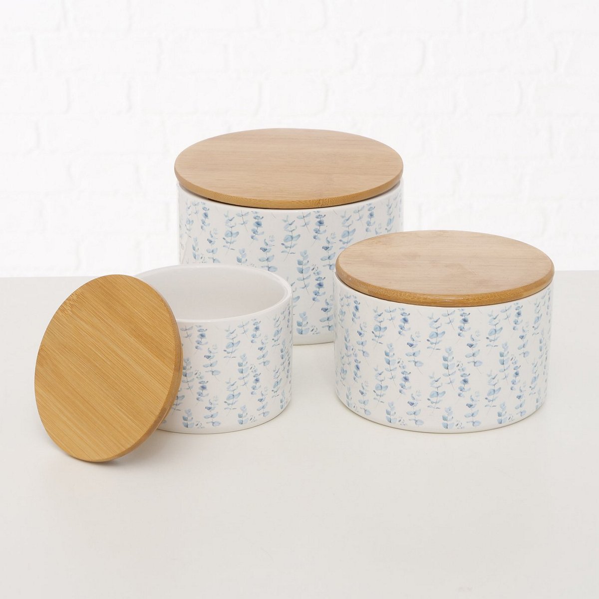Storage canister Eukana, 3 p., 3 ass., Set 3, H 8-10 cm, D 11-16 cm, Bamboo (Phyllostachys edulis), Stoneware, Multi-col