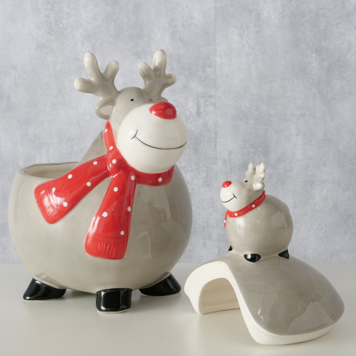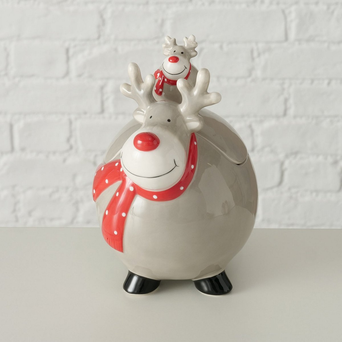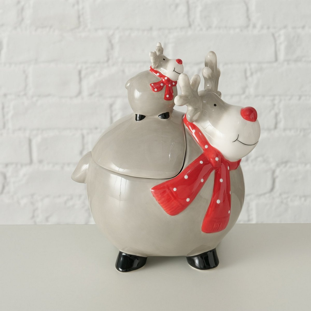 Storage canister Mirando , H 21,00 cm, Dolomite, Dotted, Multi-coloured, Grey, Red, White dolomite colour-mix