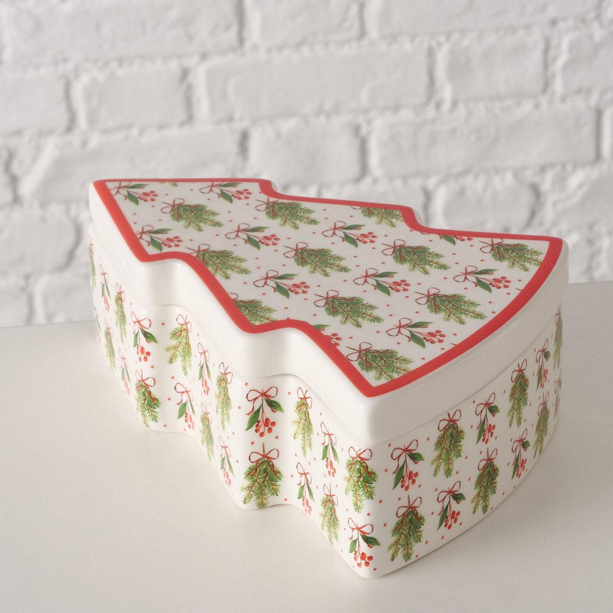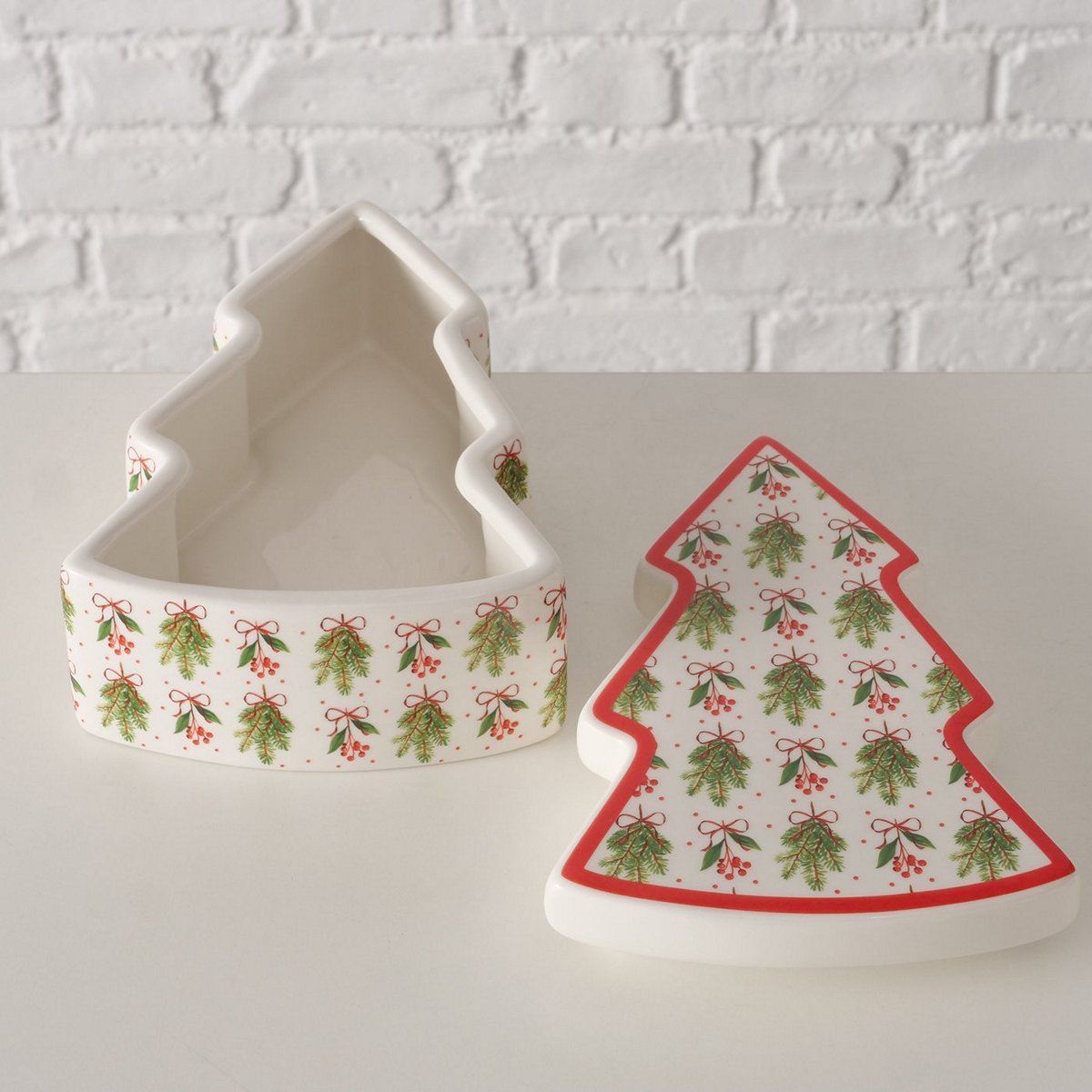Storage canister Noelle, H 8 cm, Earthenware, Coloured edge, Multi-coloured, Motif, All-round printing, Green, Red, Whit